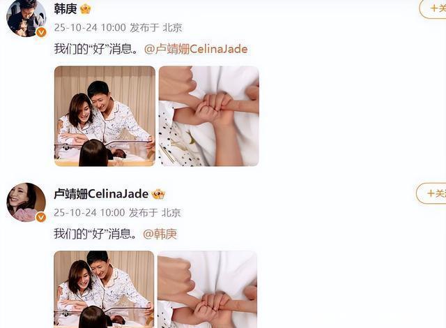韩庚得子 2天前,天王巨星郭富城刚官宣,妻子为他生下第三个女儿,全网都为60岁还老当益壮的他感到高兴。 没想到,10月24日,男明星韩庚也传出好消息,妻子卢靖姗为他生下一个儿子。